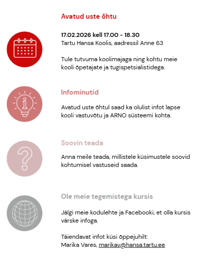 Kui sinu laps alustab kooliteed 1. septembril 2026, oled oodatud meie avatud uste õhtule: